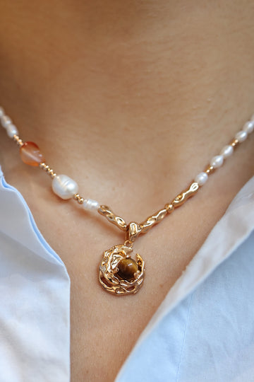 Natural Pearl Tiger Eye Abalone Heart Star Necklace