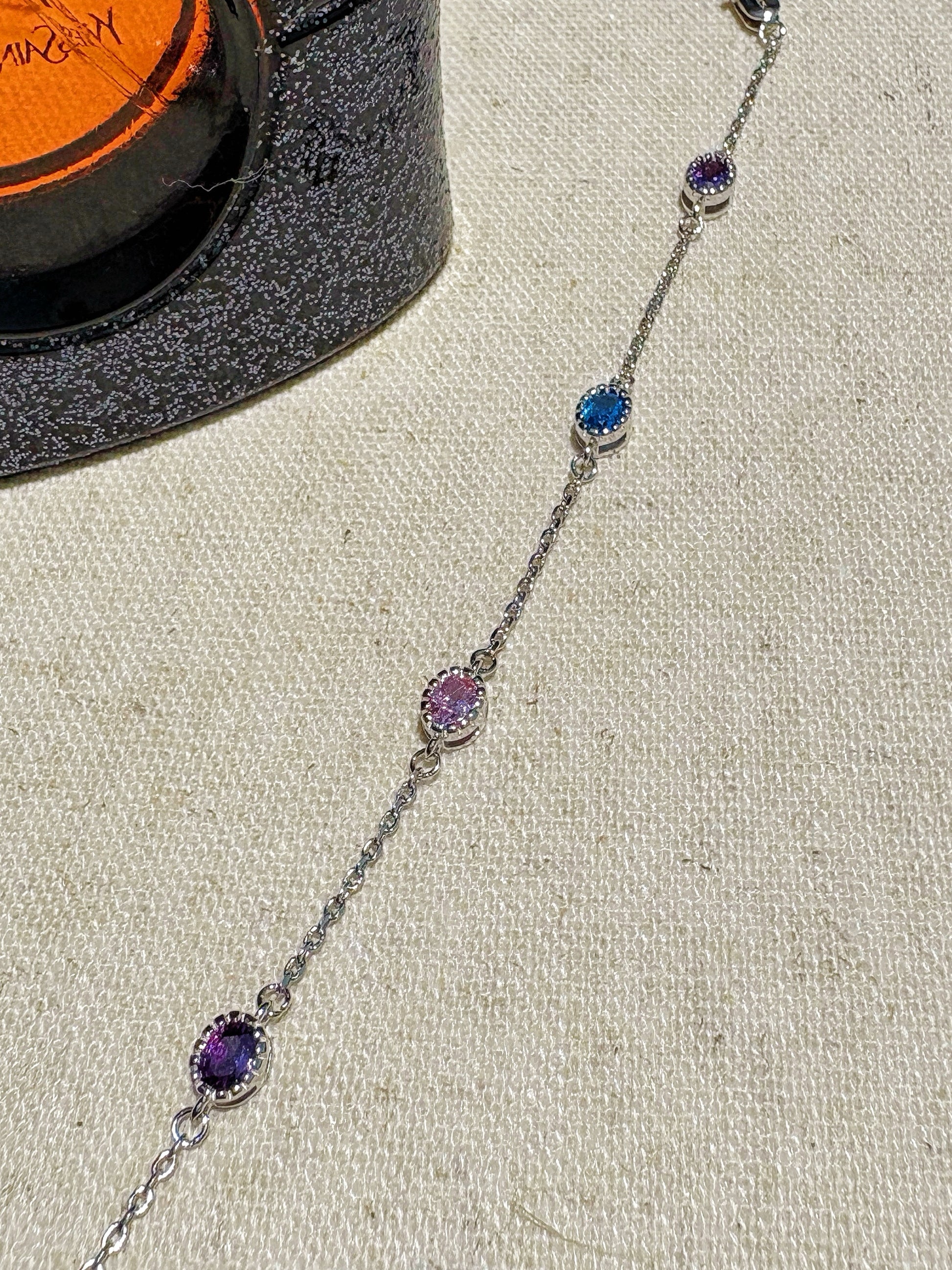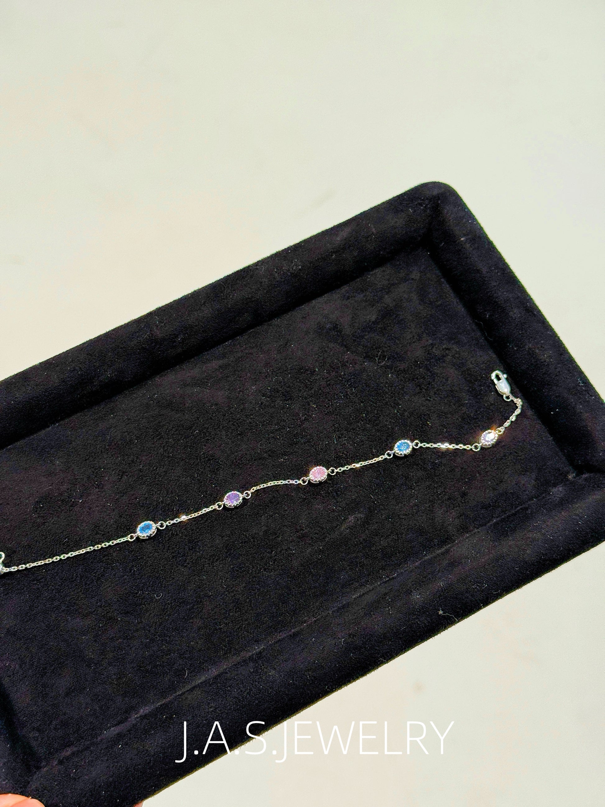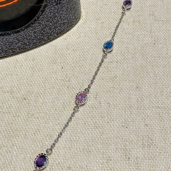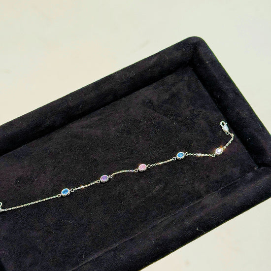 This elegant bracelet features a modern minimalist design with colorful nano zirconia accents. Lightweight and refined, it pairs beautifully with any outfit and is perfect for everyday wear.