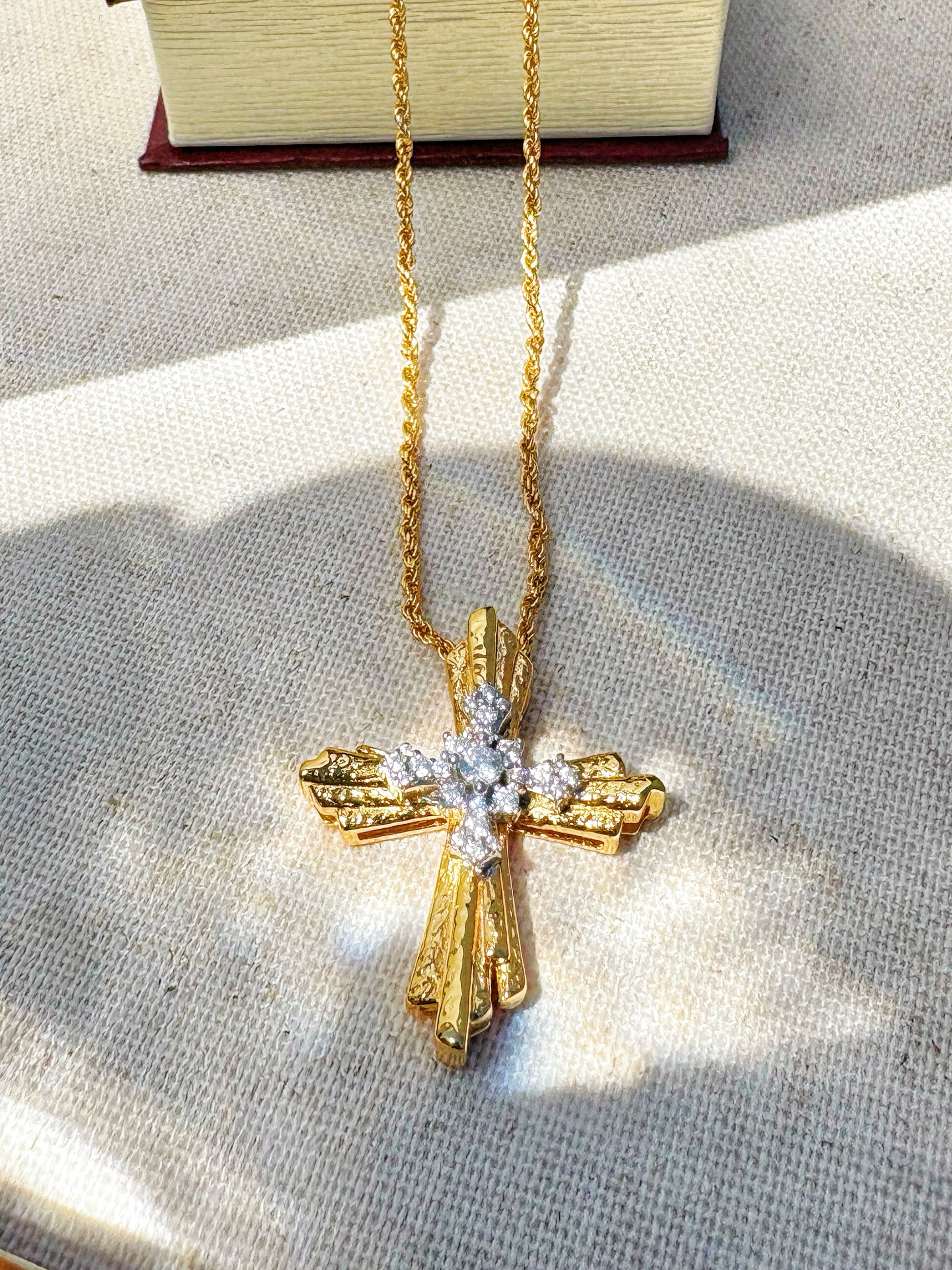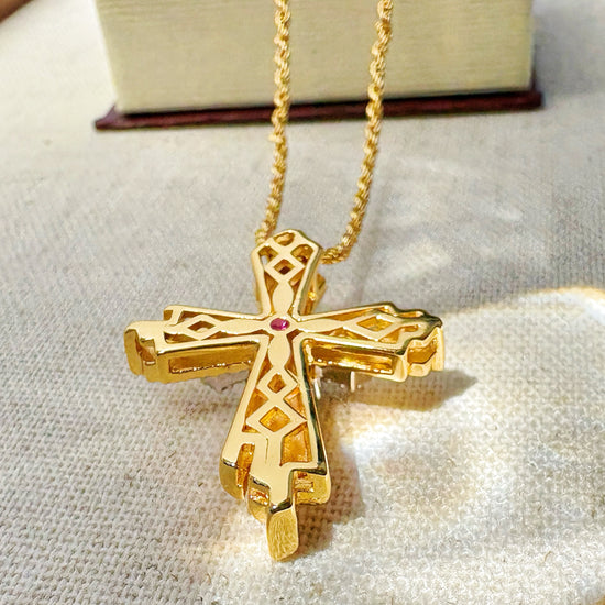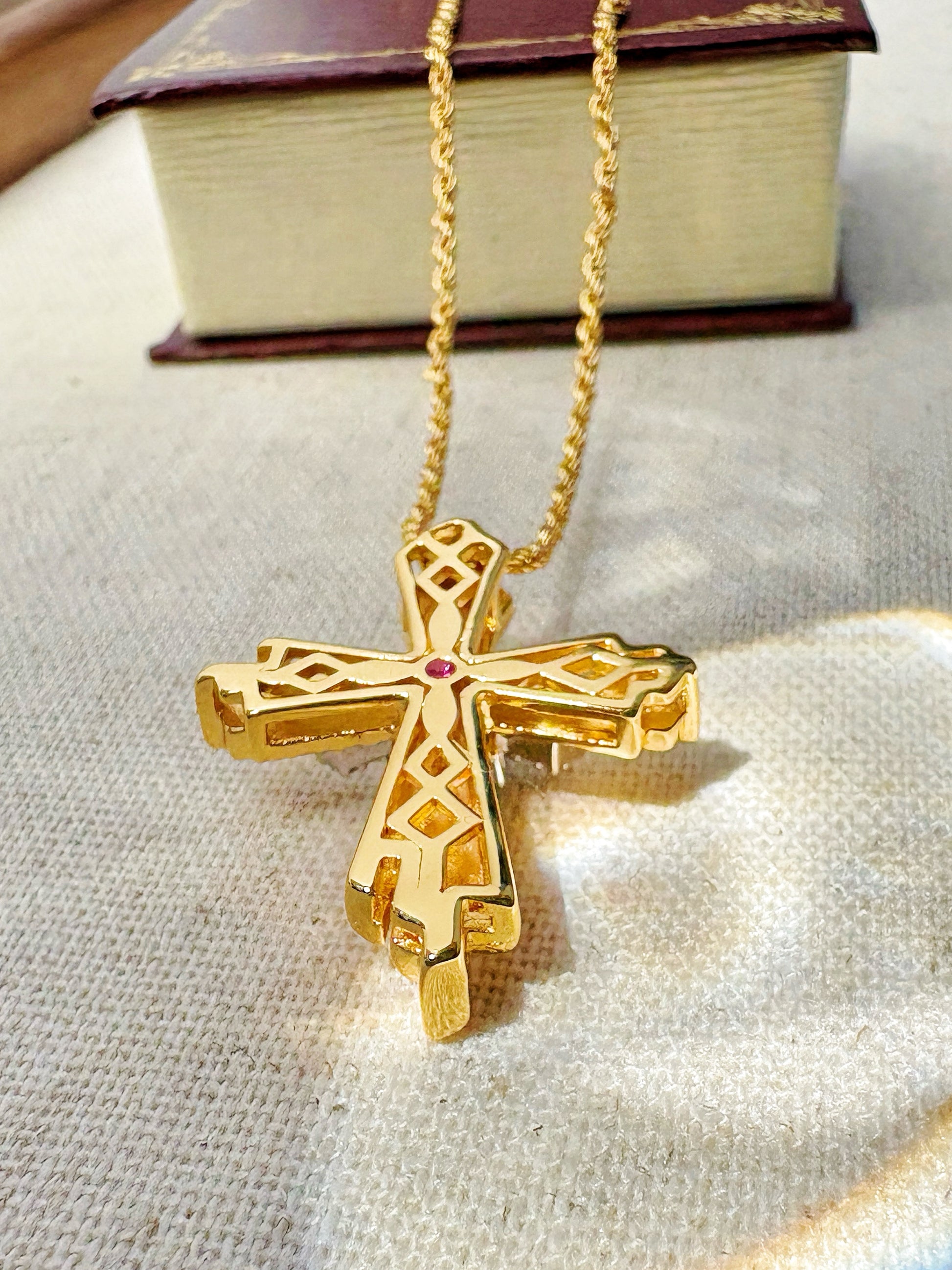 Heavily Crafted Double-Sided Cross Pendant Necklace