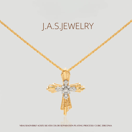 The front features a bold cross set with high-density stones for refined sparkle, while the reverse showcases an intricate openwork design with a subtle centre stone. Wear it either way for versatile styling.