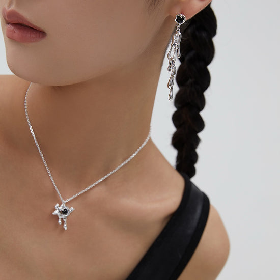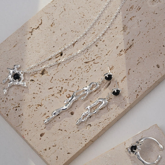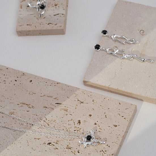 The Turbid Day Series Necklace features natural black agate, with a fluid design inspired by the vibrant hues of a sunset. It symbolizes the glow of the setting sun, the coolness of twilight, and the hope found in nature, capturing the essence of the distant horizon.