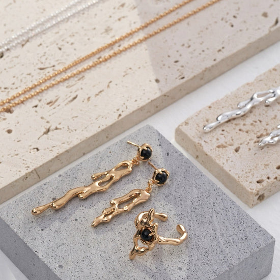 Crafted from 925 sterling silver with a thick 18K gold coating (2.5-3.0 microns), this necklace combines durability with a luxurious finish. It also features natural black agate, known for its unique patterns and calming energy. Available in white gold and vintage gold finishes.