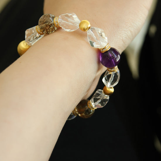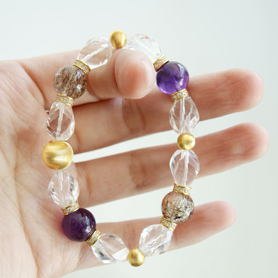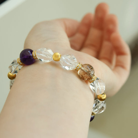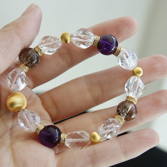 Amethyst, Clear Quartz & Phantom Crystal Bracelet