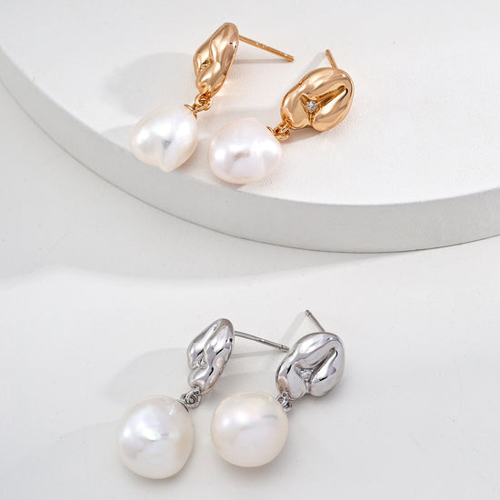 Chic Design with Natural Baroque Pearls Elegant Earrings