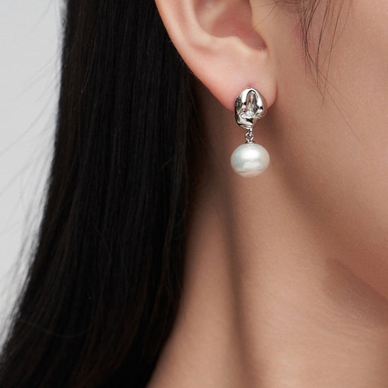 These Elegant Silver Pearl Earrings feature a playful, chic design. The round shape resembles a glutinous rice ball, with a sparkling zircon stone at the center. Natural Baroque pearls add texture and elegance, making them a perfect accessory for any occasion.