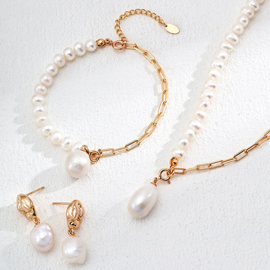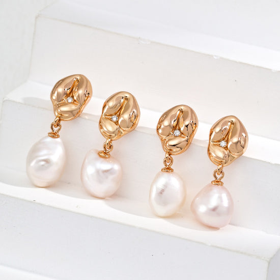Made with high-quality sterling silver with a thick 18K gold coating (2.5-3.0 microns). the earrings feature natural Baroque pearls and a zircon stone, creating a unique and sophisticated look.