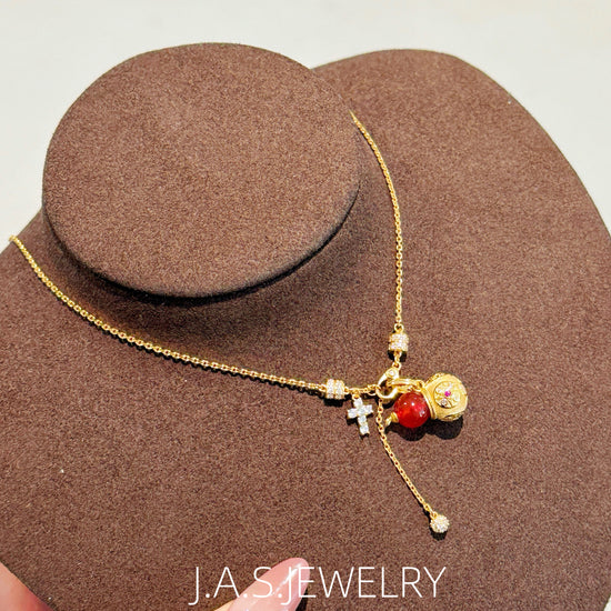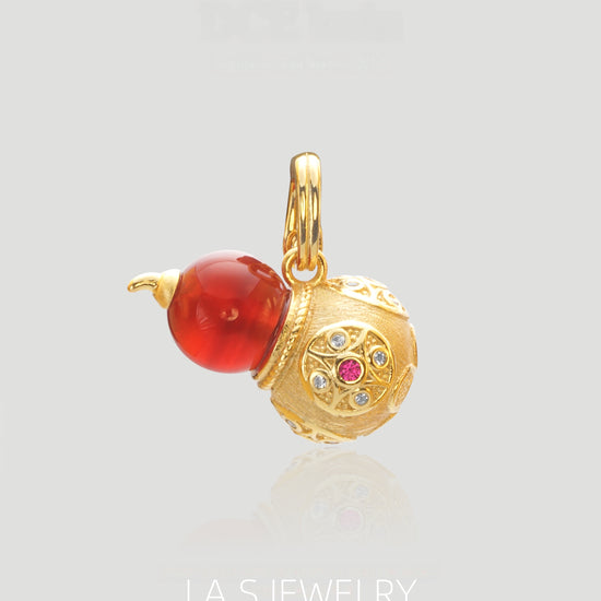 Inspired by the gourd (calabash) motif, a form long associated with ideas of good fortune, abundance, and continuity, this pendant reinterprets traditional symbolism through a refined, vintage lens.