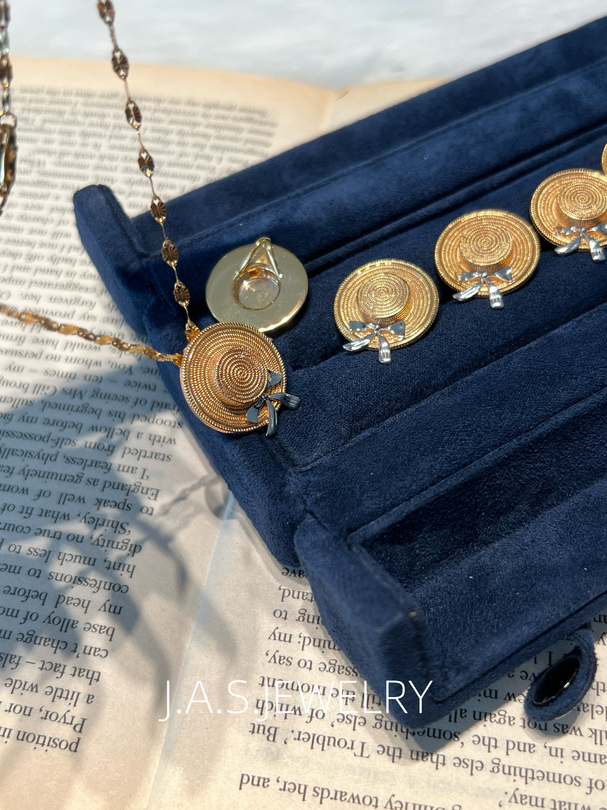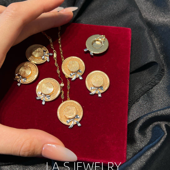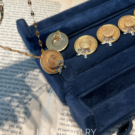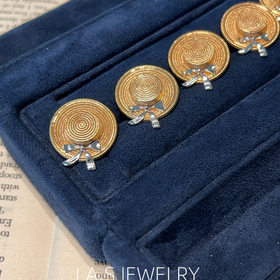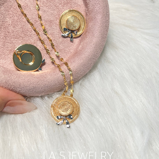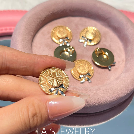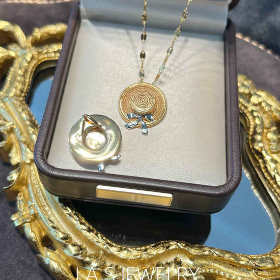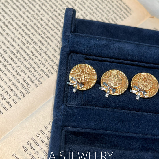 Inspired by summer and everyday moments, this piece features a straw hat shape with a subtle bow detail. The design is playful yet minimal, adding a light summer touch to both daily and vacation looks.