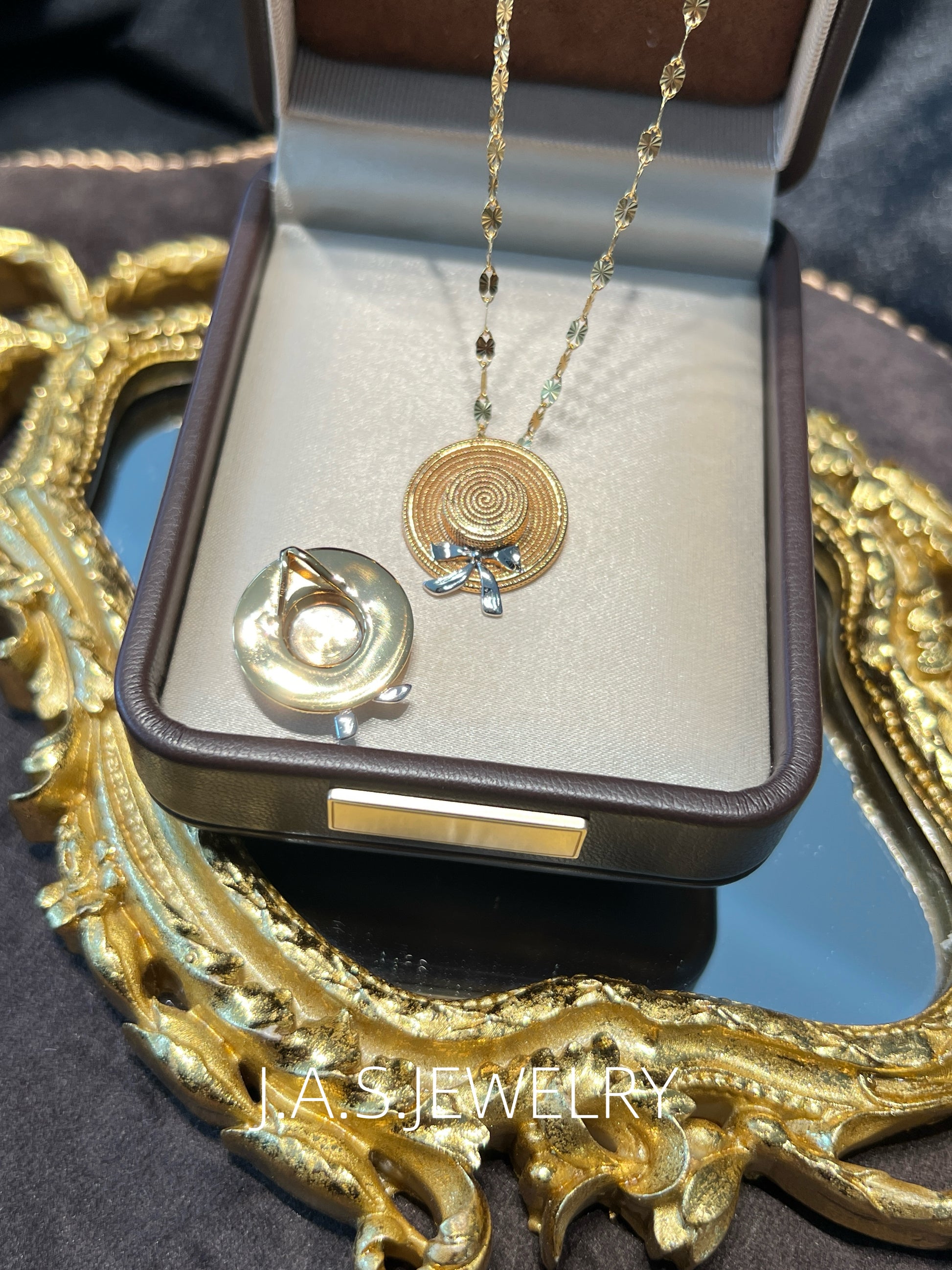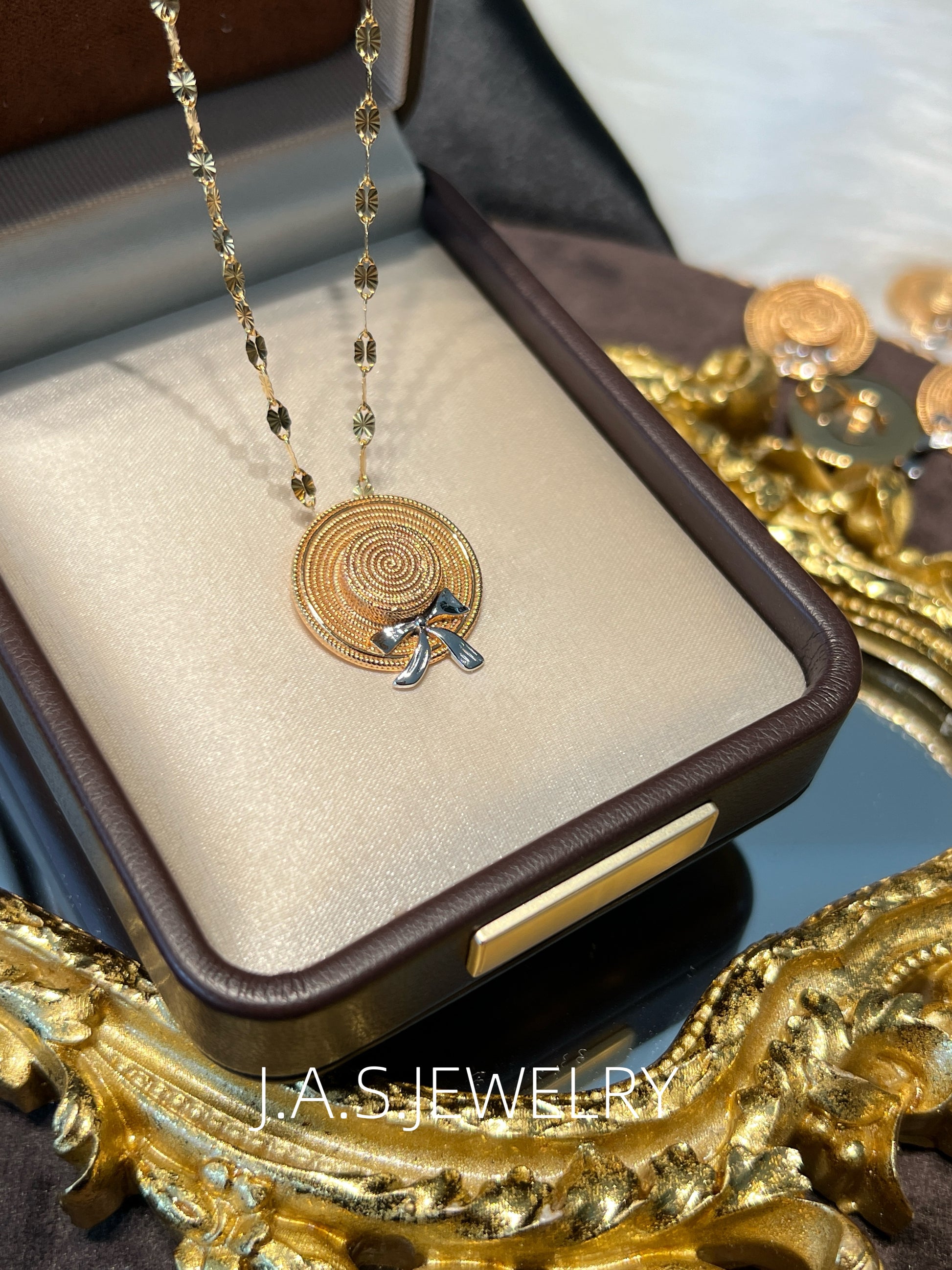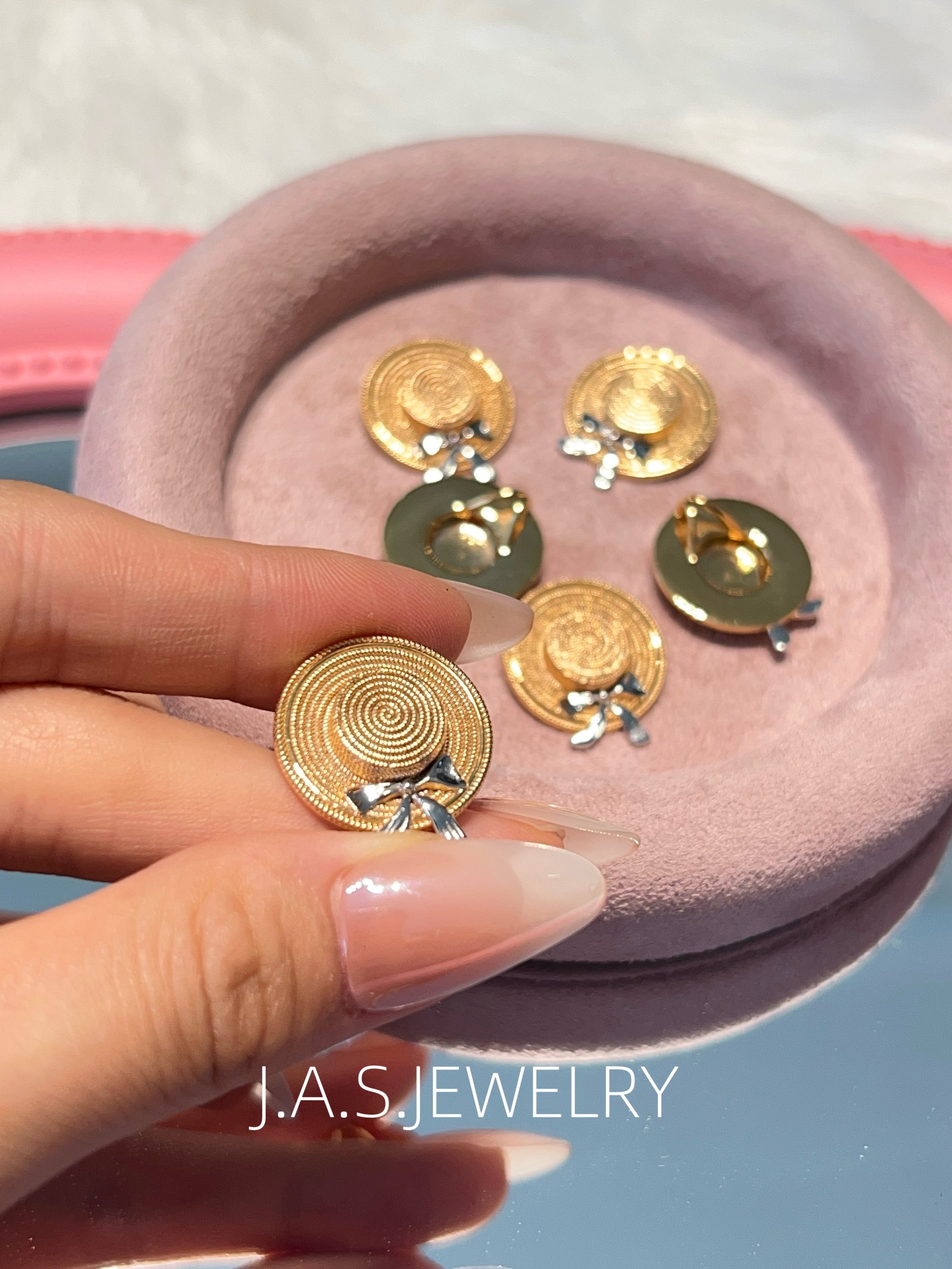 Inspired by summer and everyday moments, this piece features a straw hat shape with a subtle bow detail. The design is playful yet minimal, adding a light summer touch to both daily and vacation looks.