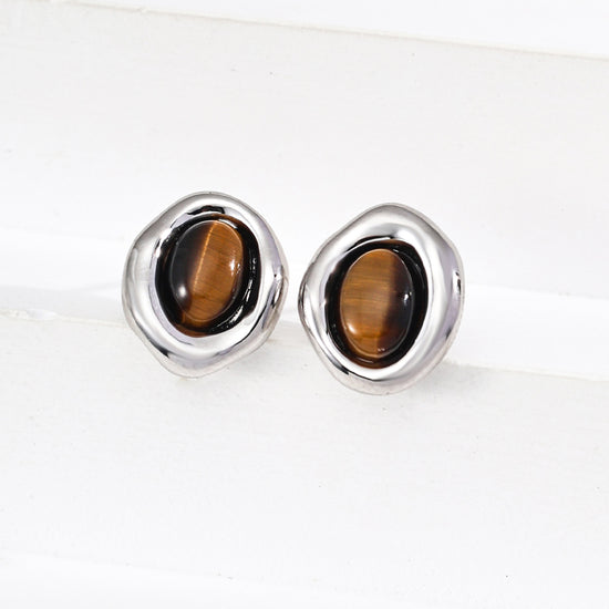 S925 Silver Vintage Natural Tiger Eye Stone Earrings