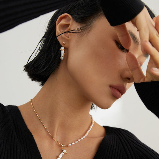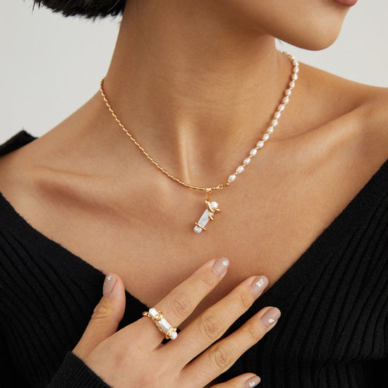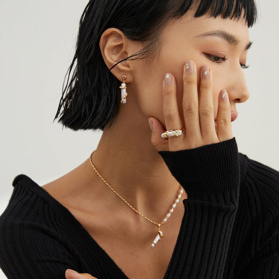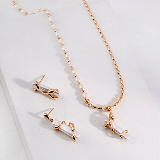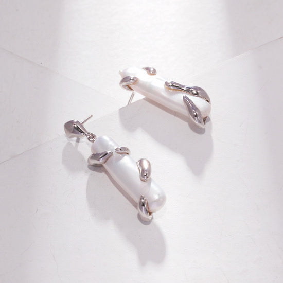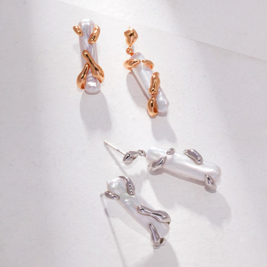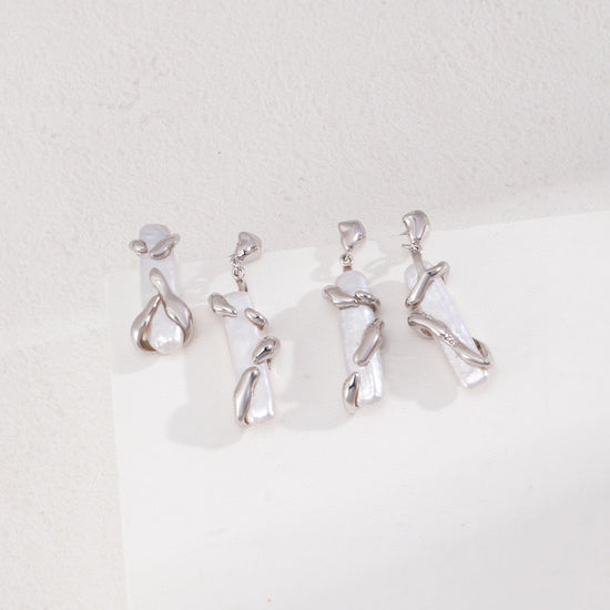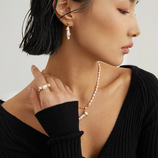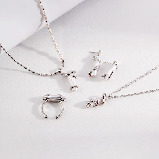 Fluid Silver Design Natural Baroque Pearl Necklace, Earrings & Ring