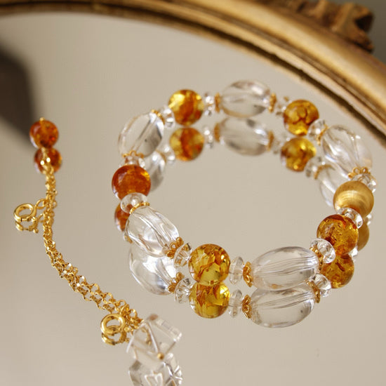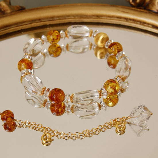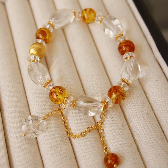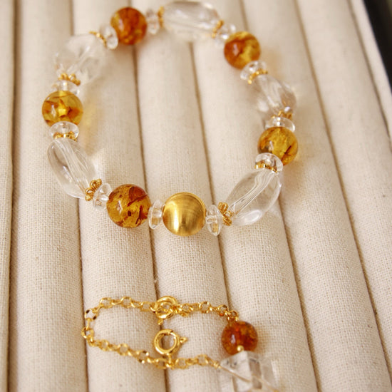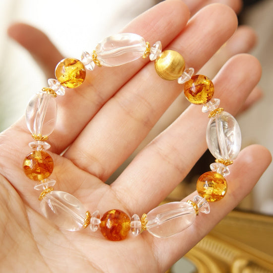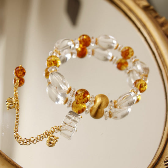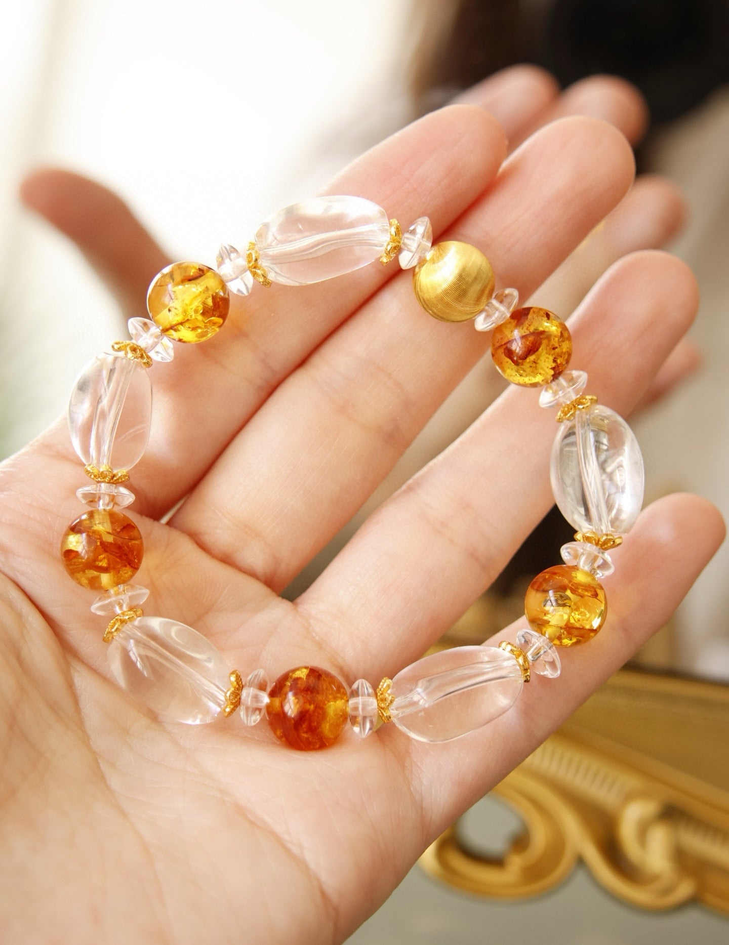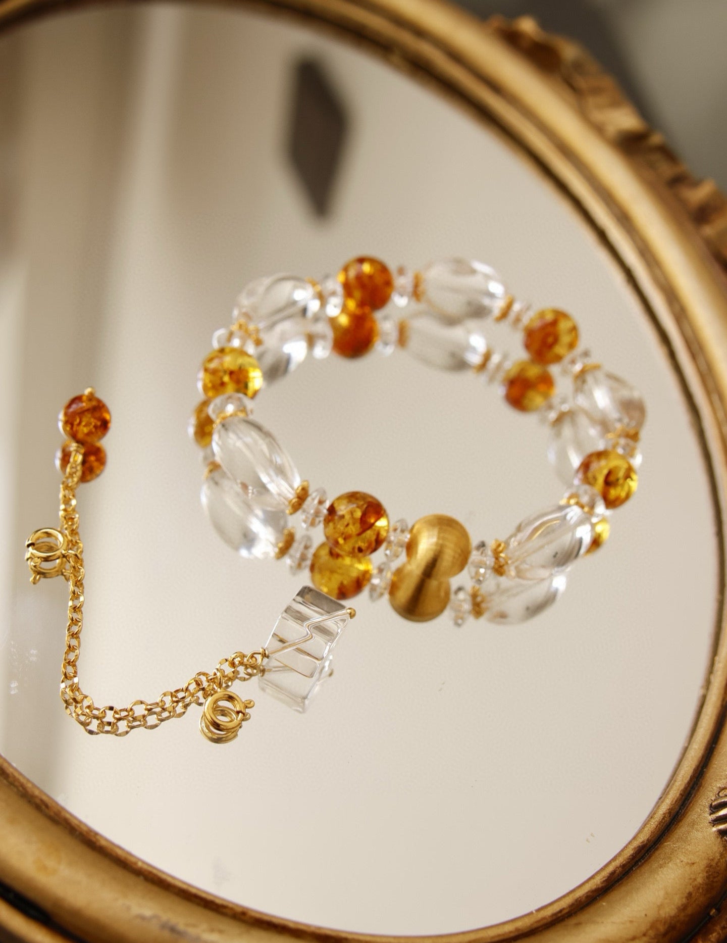Bridging solar vitality and pure intention, this bracelet balances abundance (citrine) and clarity (quartz) for those pursuing prosperity with mindful focus.
