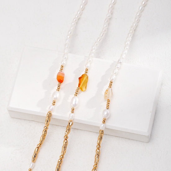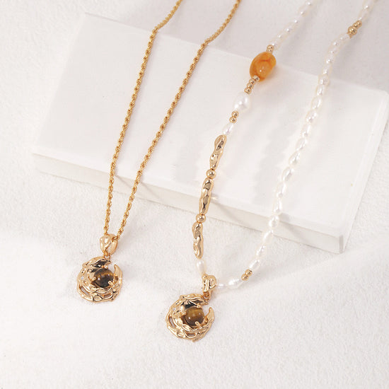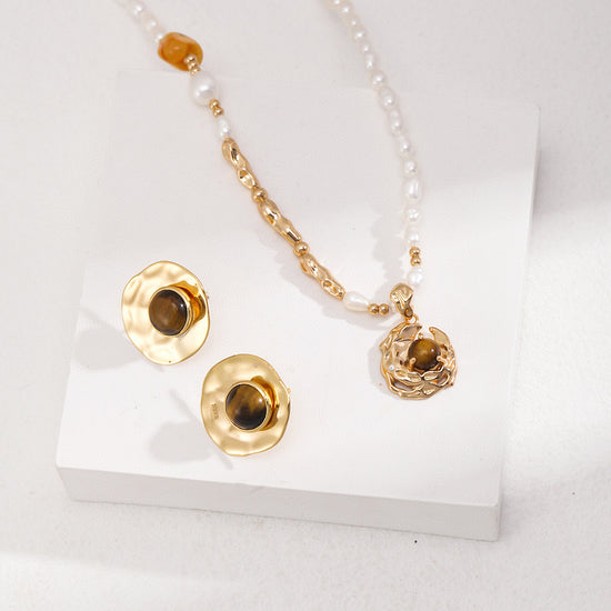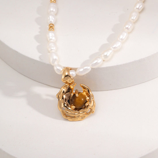 This necklace blends the timeless beauty of natural pearls, tiger eye stones, and agate in a vintage gold-tone design. Perfect for those who appreciate elegant, earthy accessories with a modern twist, this piece is versatile and stylish for both everyday wear and special occasions.